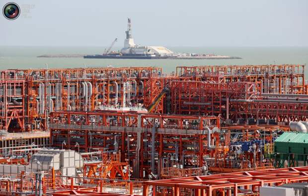 Шельфовое нефтегазовое месторождение Кашаган в Каспийском море в Казахстане.
